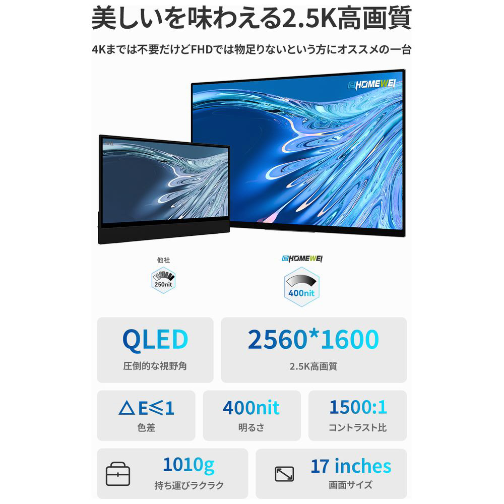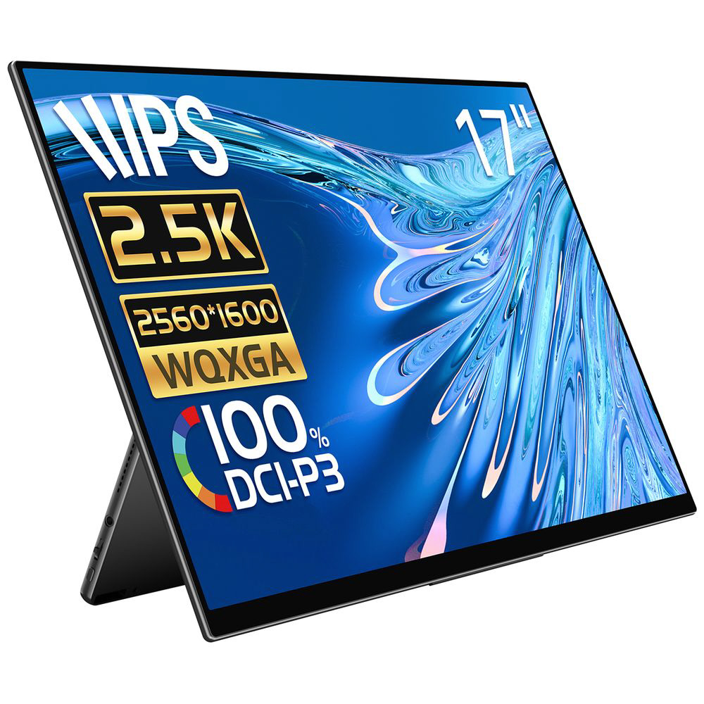 USB-C接続 QLED 17インチ 薄型 アスペクト比16:10の大画面!2.5Kモバイルモニター