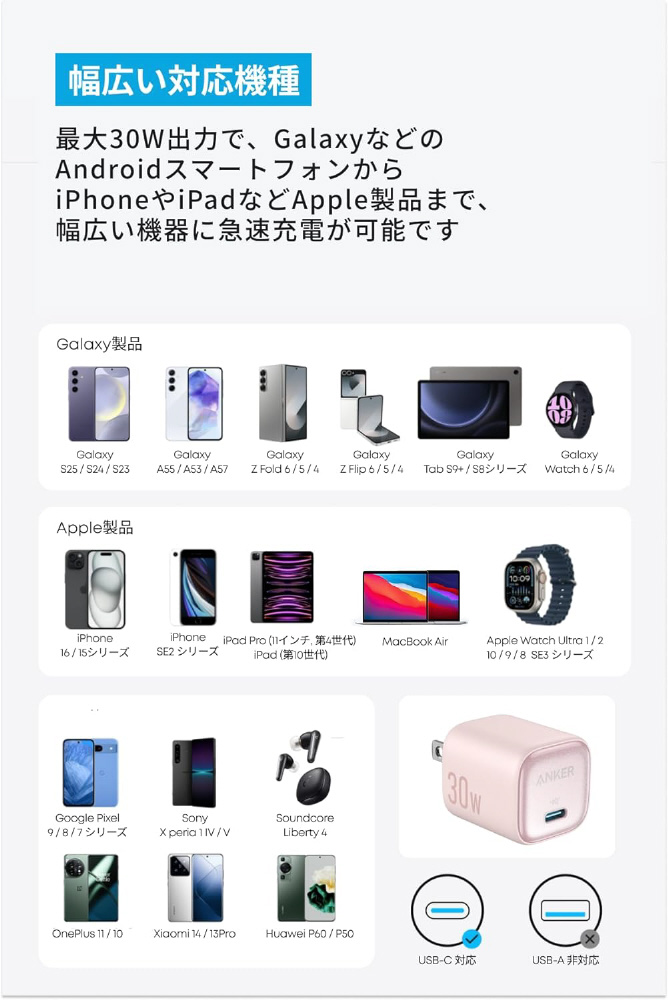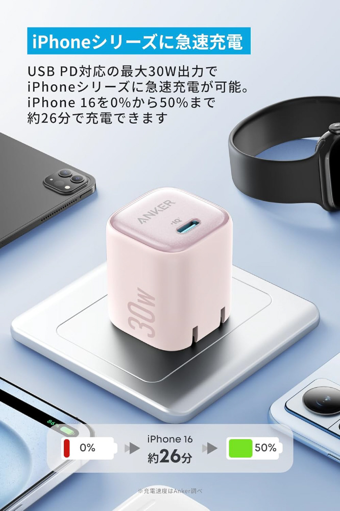Anker Zolo Charger (30W) ピンク A2698N51 [1ポート /USB Power Delivery対応]