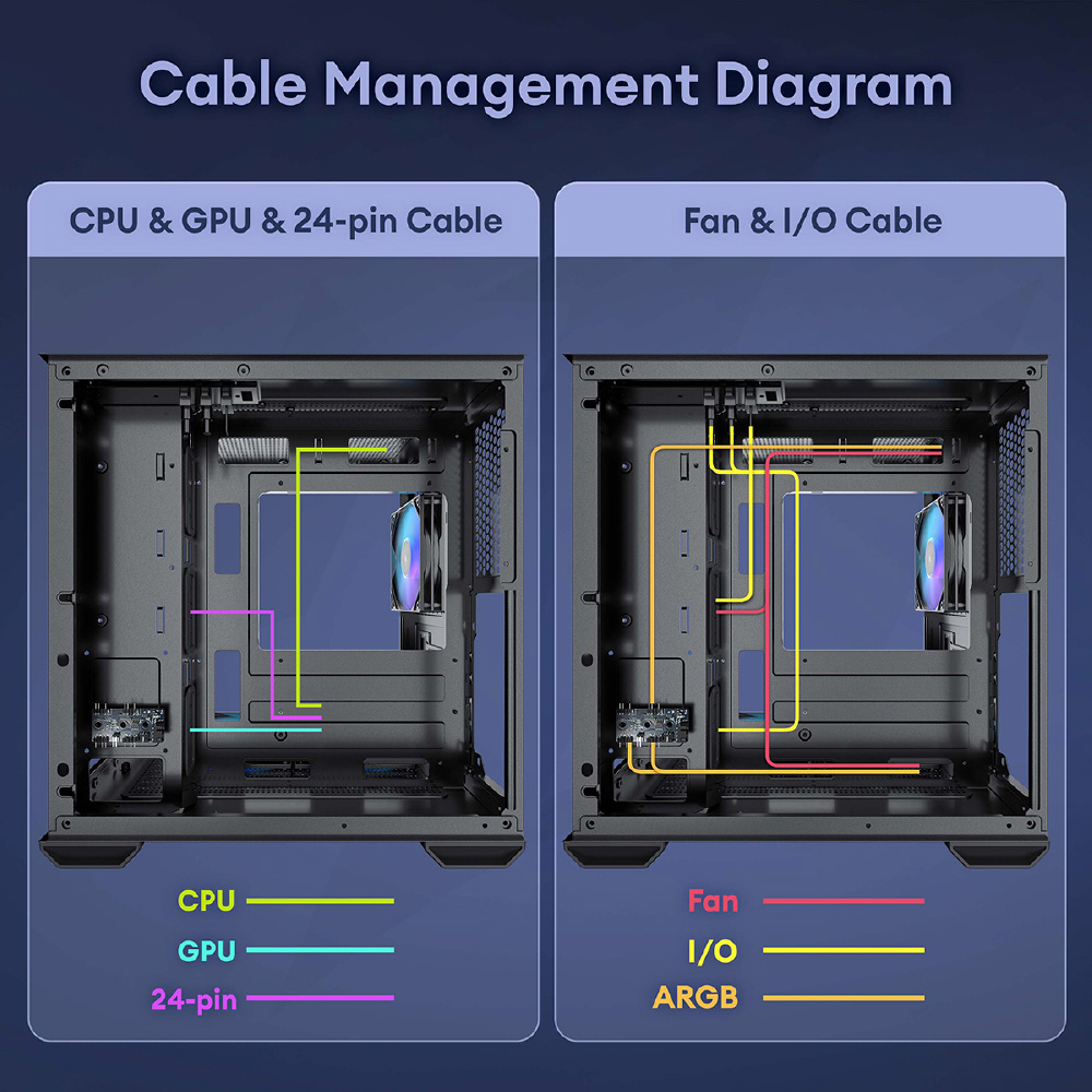 ARGBファン3個標準搭載のMicro-ATX対応ミドルタワーケース