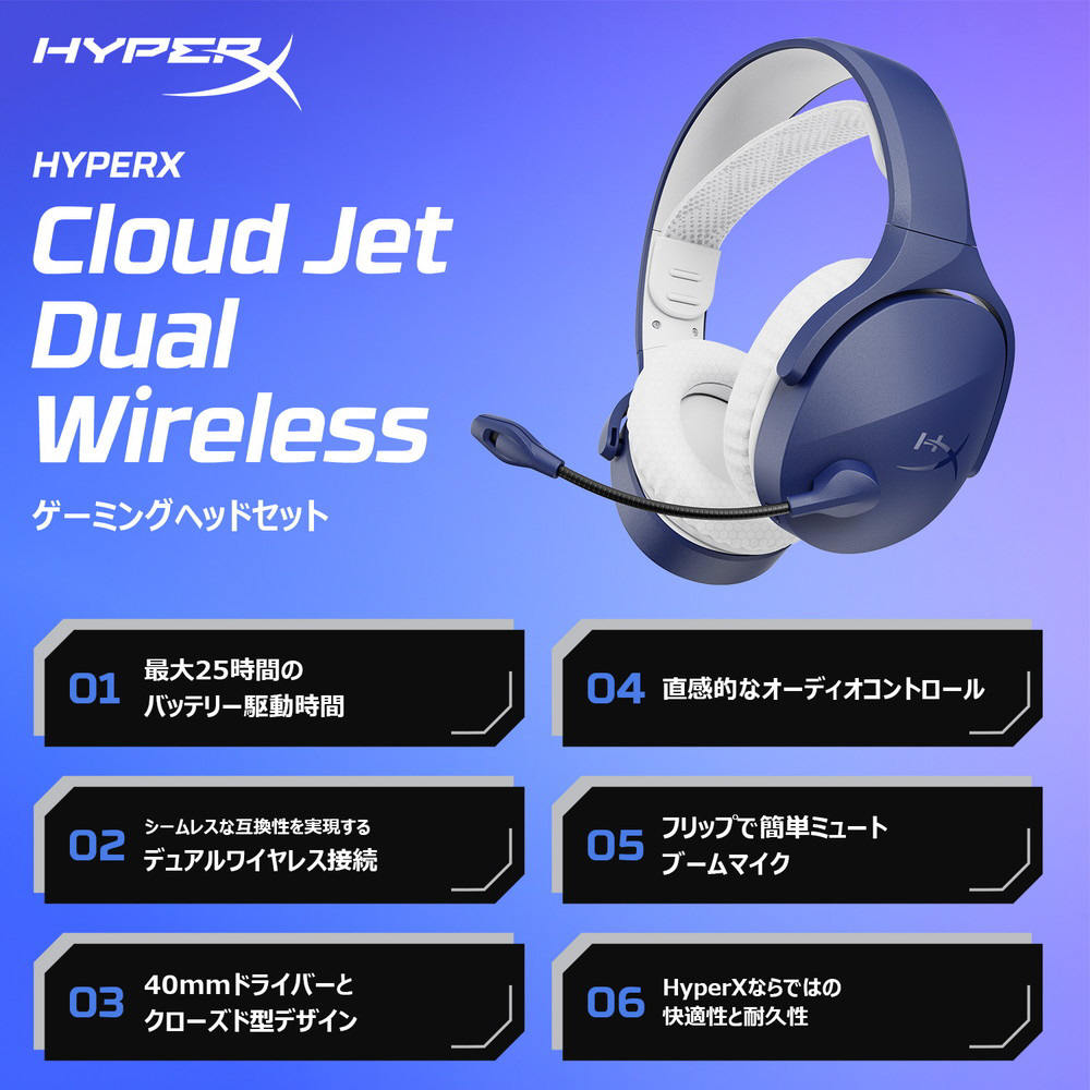 AM7A0AA ゲーミングヘッドセット Cloud Jet Dual Wireless ライトブルー [ワイヤレス(Bluetooth+USB) /両耳 /ヘッドバンドタイプ]
