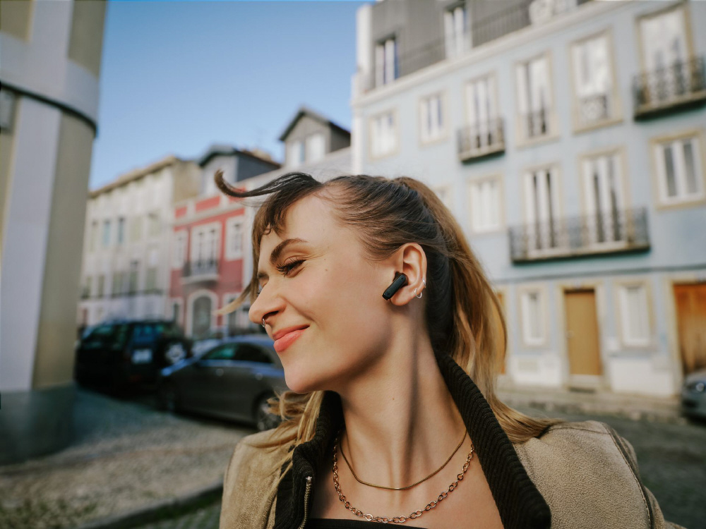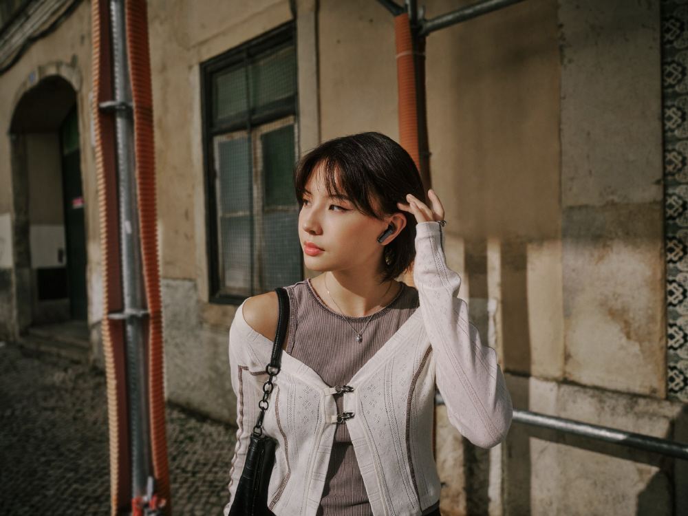 快適な装着感を追求して設計されたオープン型完全ワイヤレスイヤホンです。密閉型イヤホン特有の耳道への圧迫感や遮断感、長時間使用による疲れを感じにくく、軽やかで自然なフィット感を提供します。独自のステム(脚部)デザインにより、本体の重量を耳甲介に均等に分散し、耳への負担を大幅に軽減。これにより、耳への密着感が苦手な方でも、長時間快適に音楽を楽しむことができます。