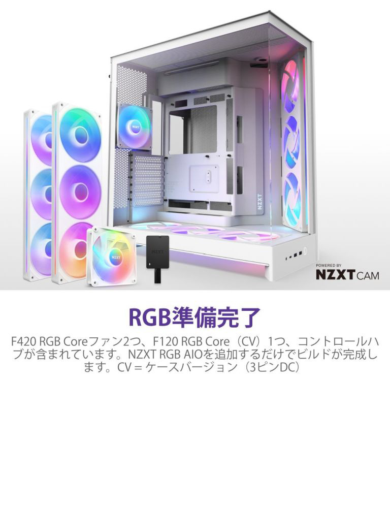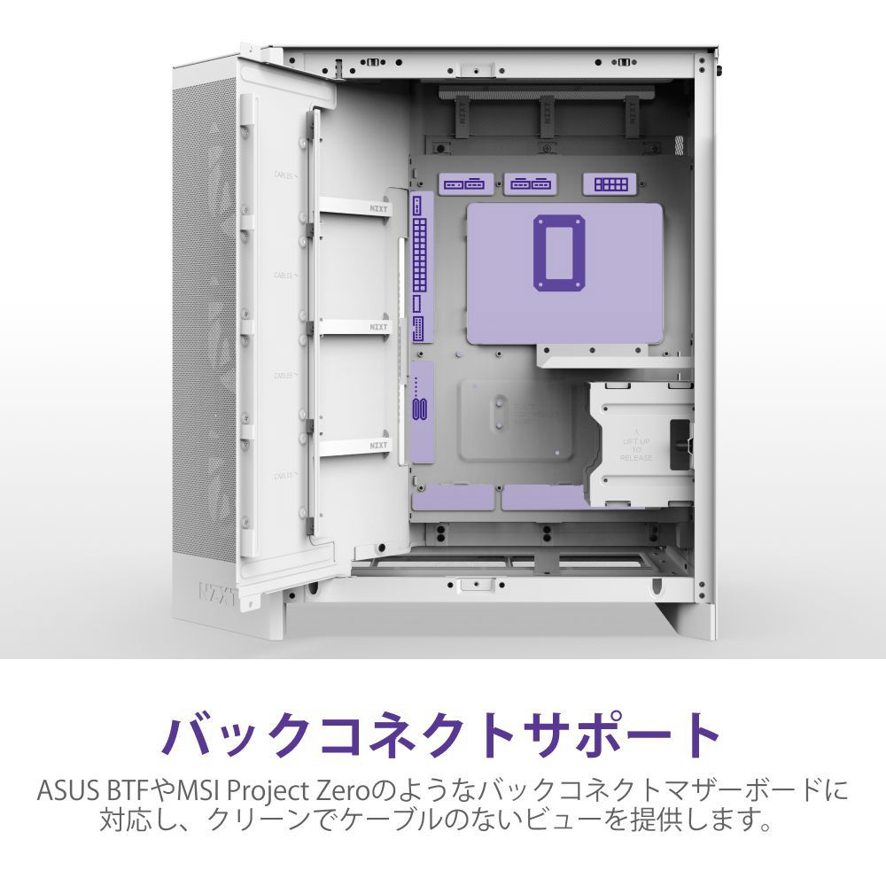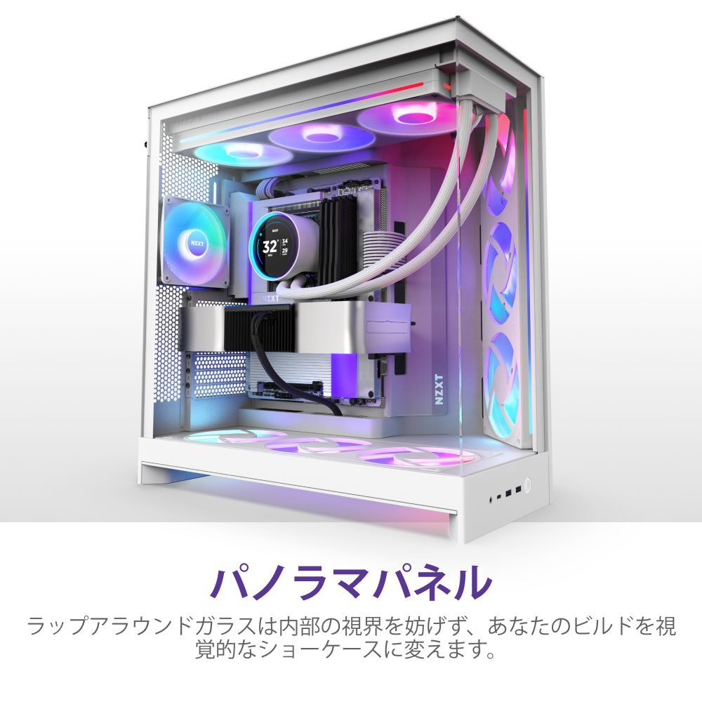 デュアルチャンバー構造と強化ガラスパネルにより、機能性と美しさを両立。最大420mmラジエーターや最大10基のファンに対応し、ハイエンド構成にも最適です。