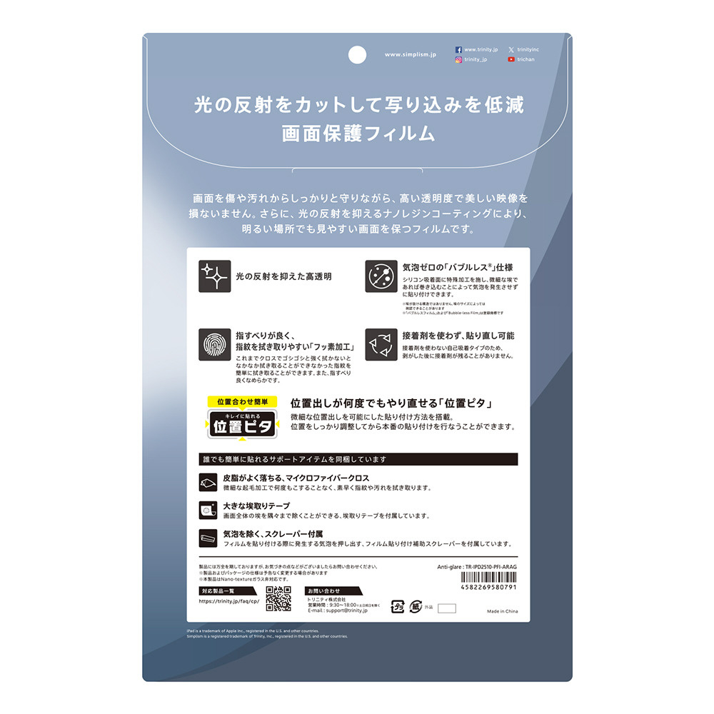 商品名 | 11インチ iPad(A16)、10.9インチ iPad(第10世代)用 超透明 反射防止 画面保護フィルム 位置ピタ TR-IPD2510-PFI-ARAG |