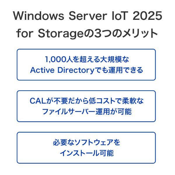 「Windows Server IoT 2025 for Storage」は、Windows Server 2025をベースとしたファイルサーバー専用のOSです。