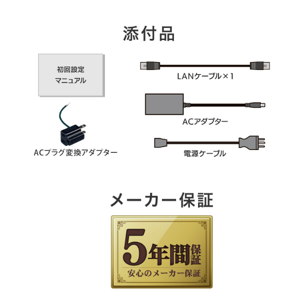 お客様により長く、安心してNASをご利用いただくために、高い保証レベルでの安心を実現した「5年保証」+「データ復旧サービス」を標準添付いたしました。