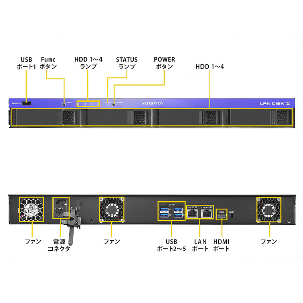 LAN DISK Z [64TB搭載 /4ベイ] ラックマウント Windows Server IoT 2025 for Storage Standard搭載 法人向けNAS(大規模オフィス 200人〜)【受注生産品】 HDL4-Z25SATB64U