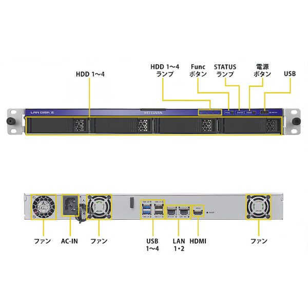 パフォーマンスで選ぶ信頼の4ドライブラックマウントWindows NAS