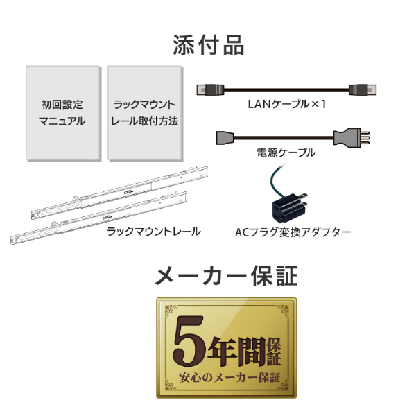 お客様により長く、安心してNASをご利用いただくために、高い保証レベルでの安心を実現した「5年保証」+「データ復旧サービス」を標準添付いたしました。