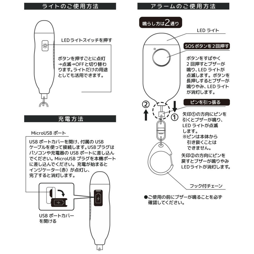 ※ 本製品は大音量で相手を威嚇するためのもので、犯罪を防止するものではありません。