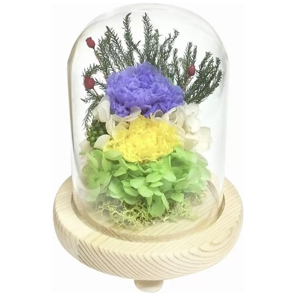 ガラスドームに包まれたプリザーブドフラワーアレンジメント