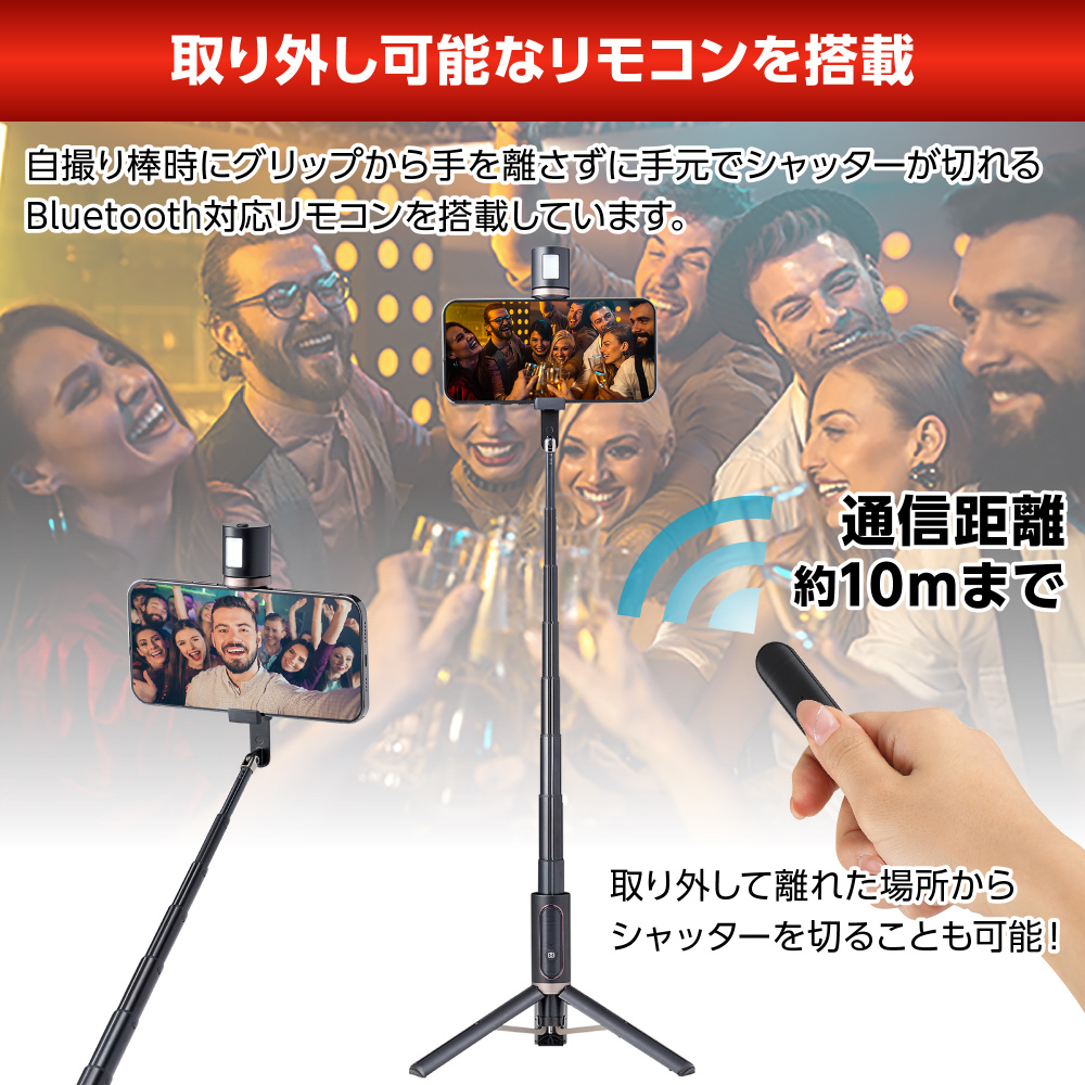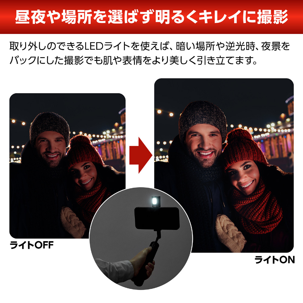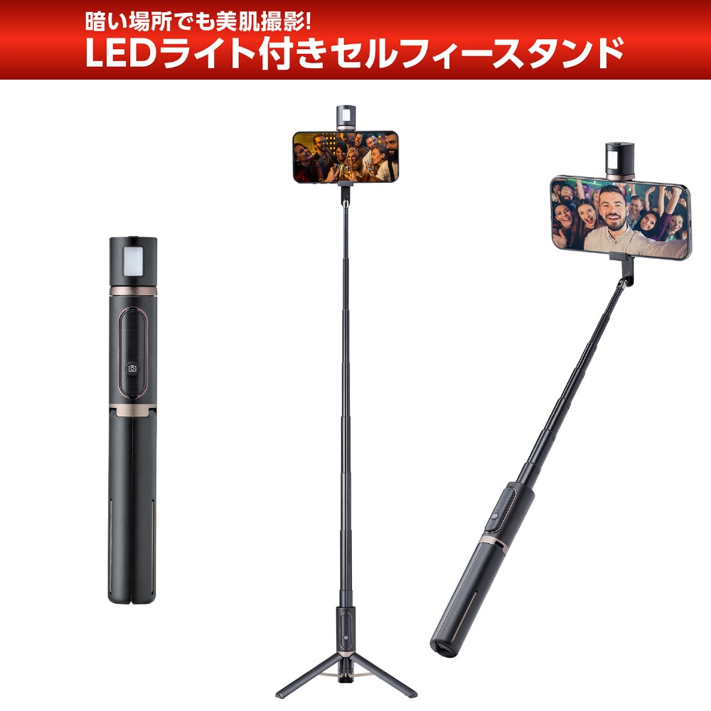暗い場所でも美肌に撮れるLEDライト付きセルフィースタンド。