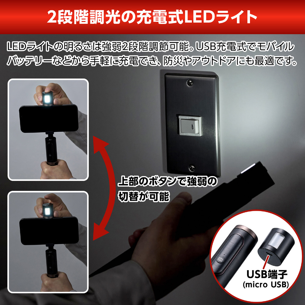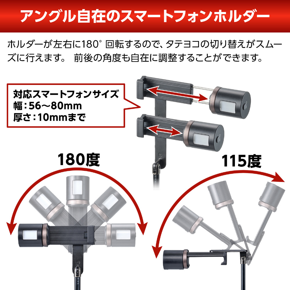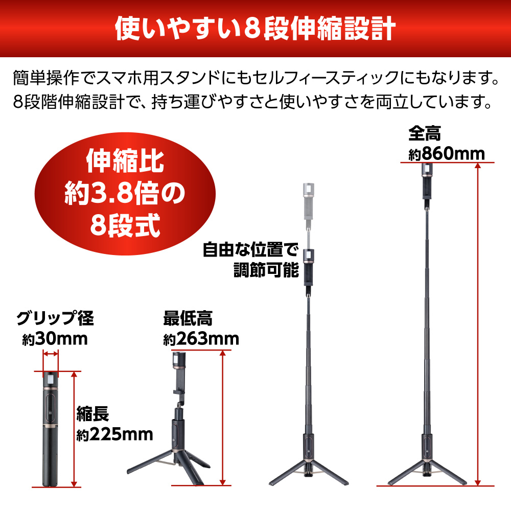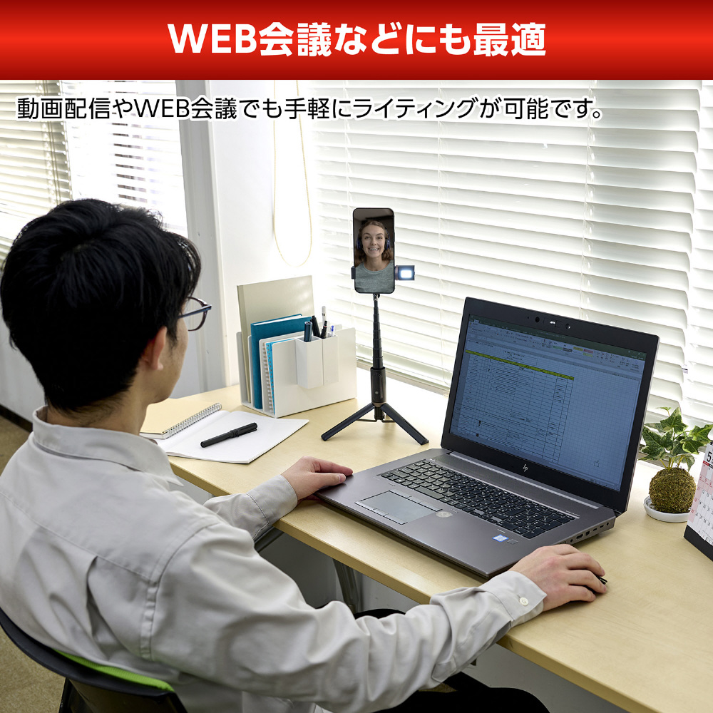 暗い場所でも美肌に撮れるLEDライト付きセルフィースタンド。