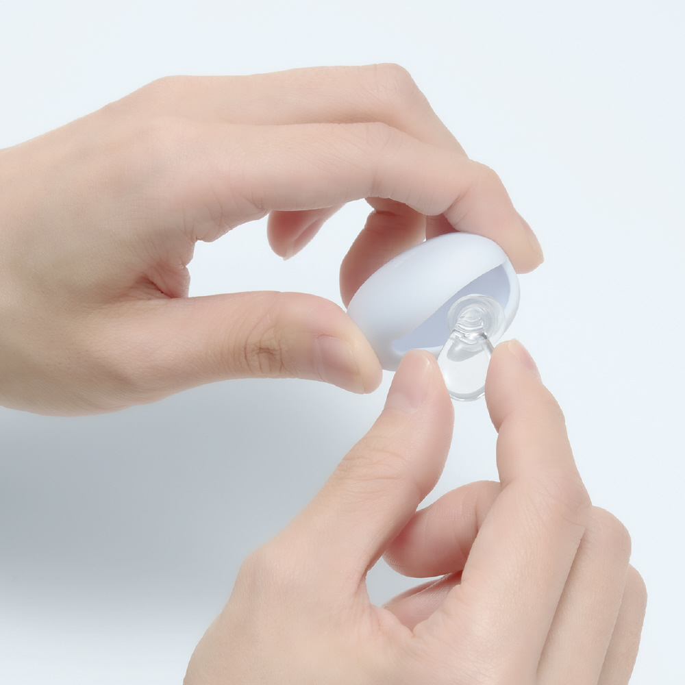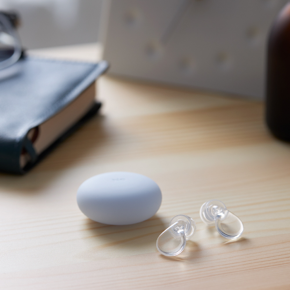 柔らかく肌触りの良いシリコン製の収納ケースを付属。ポケットやカバンにすっきり収まり、イヤープラグを気軽に持ち運べるミニマルな形状です。側面を軽く押しこむだけで簡単に開閉できるので、就寝時の暗がりでもスムーズに取り出せます。