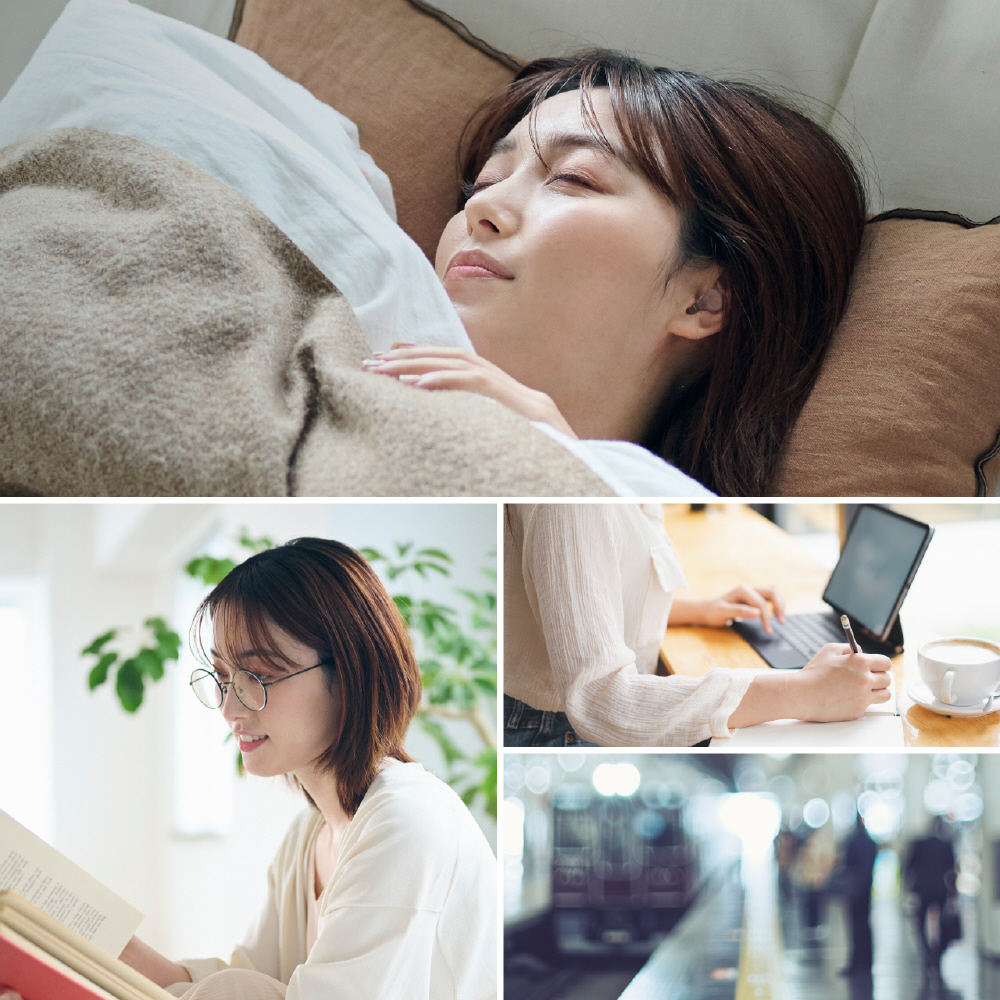 私たちが日常で耳にするのは、心地よい音楽だけではありません。エアコンの稼働音や周囲の話し声など、さまざまな雑音が常に発生しており、気づかないうちにストレスを感じていることも少なくありません。誰しも、騒がしさから解放され、静寂を感じたい瞬間があるはずです。「DROP in Sleep」を使えば、音楽を聴いていない時間も、より快適な環境で過ごすことができます。