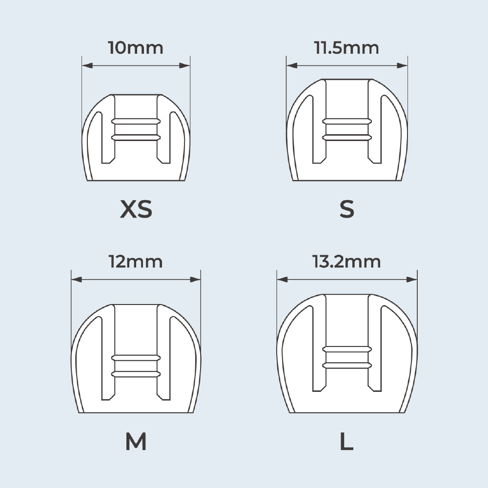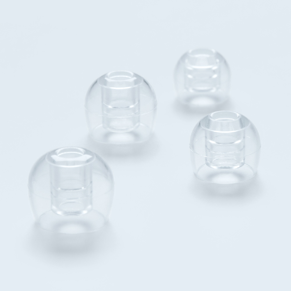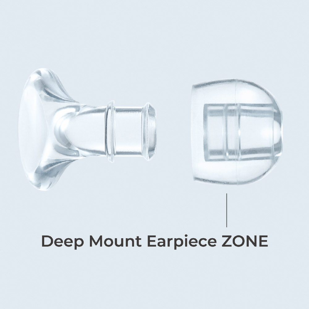 イヤーピースには、イヤープラグと同じ液状シリコーンゴム製の「ディープマウントイヤーピースZONE」を採用。耳の奥でしっかりフィットする独自形状により、高い密閉性と安定した装着感を実現しました。さらに、優れた安全性と耐久性を備え、長時間でも快適にご使用いただけます。XS/S/M/L の4サイズのイヤーピースが付属しており、耳穴の大きさや装着感に合わせて最適なサイズをお選びいただけます。