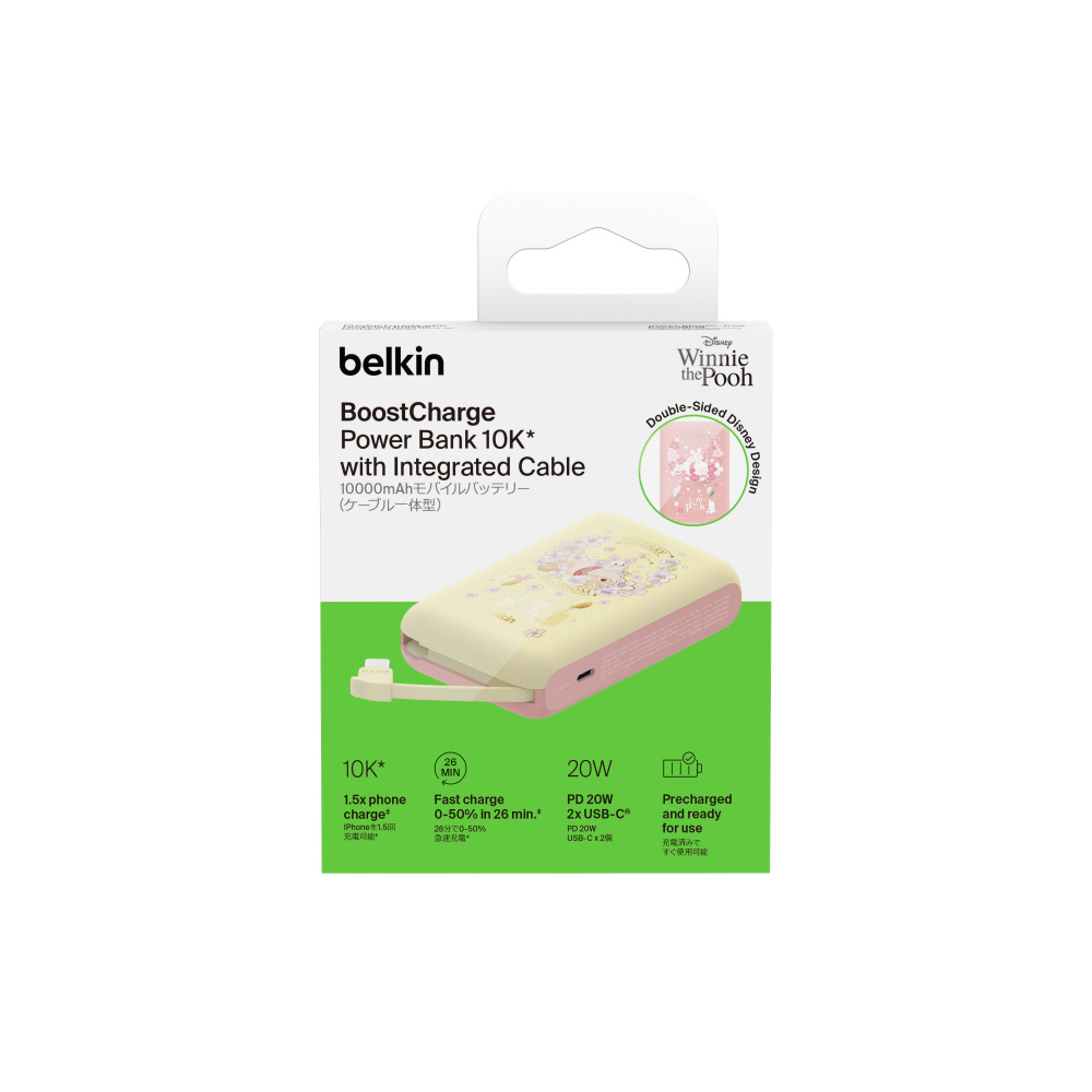 BoostCharge 20W ケーブル内蔵 モバイルバッテリー10000mAh クマのプーさん BPB021qcWP-DY