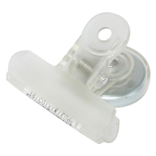 丈夫(本体ABS樹脂)、綺麗(スケルトン調)、錆びにくい(ステンレスバネ)、強力(ヨーク付きマグネット使用)の4拍子揃ったマグネットクリップ。レジ、冷蔵庫、ロッカー、デスクの友に。