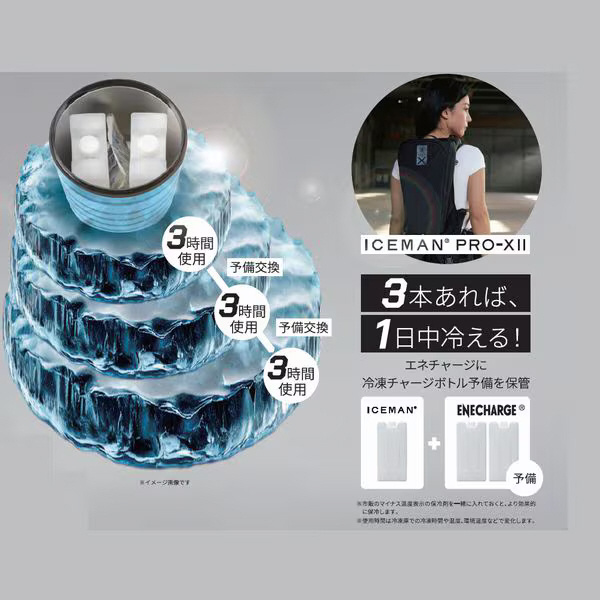 車で持ち運べるちょうどいいサイズ、大容量5.5Lでありながら、冷凍チャージボトル5.0(別売り、1リットル)×2本、3.0(別売り、600ml)×3本が収納可能で、スポーツやアウトドア、作業現場に持ち運べばアイスマンベストの長時間使用が可能です。