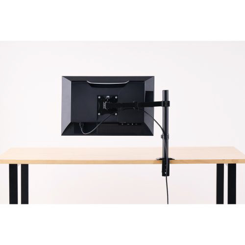 モニターの位置を自由に調節でき、デスクのスペースを有効活用!17〜32インチまでのモニターに対応する、ロングアームタイプのシングルモニターアーム。モニターからのケーブルをすっきりまとめることができる、ケーブルホルダー付きです。
