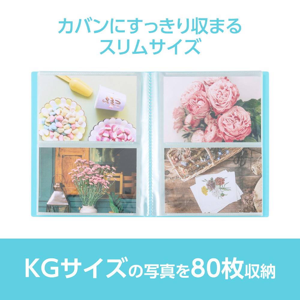 | 商品名 | 【高透明フィルム アルバム】 ビュートクリア ハガキ・ポストカード・KGサイズ 80枚収納 ライトブルー ABTC-KG80LB |