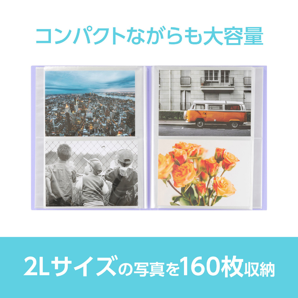 | 商品名 | 【高透明フィルム アルバム】 ビュートクリア 2Lサイズ 160枚収納 パープル ABTC-2L160PU |