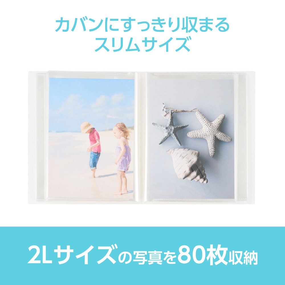 | 商品名 | 【高透明フィルム アルバム】 ビュートクリア 2Lサイズ 80枚収納 ホワイト ABTC-2L80WT |