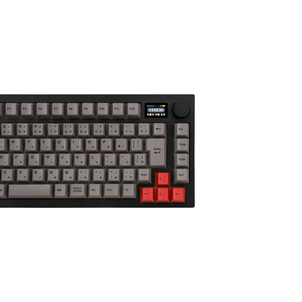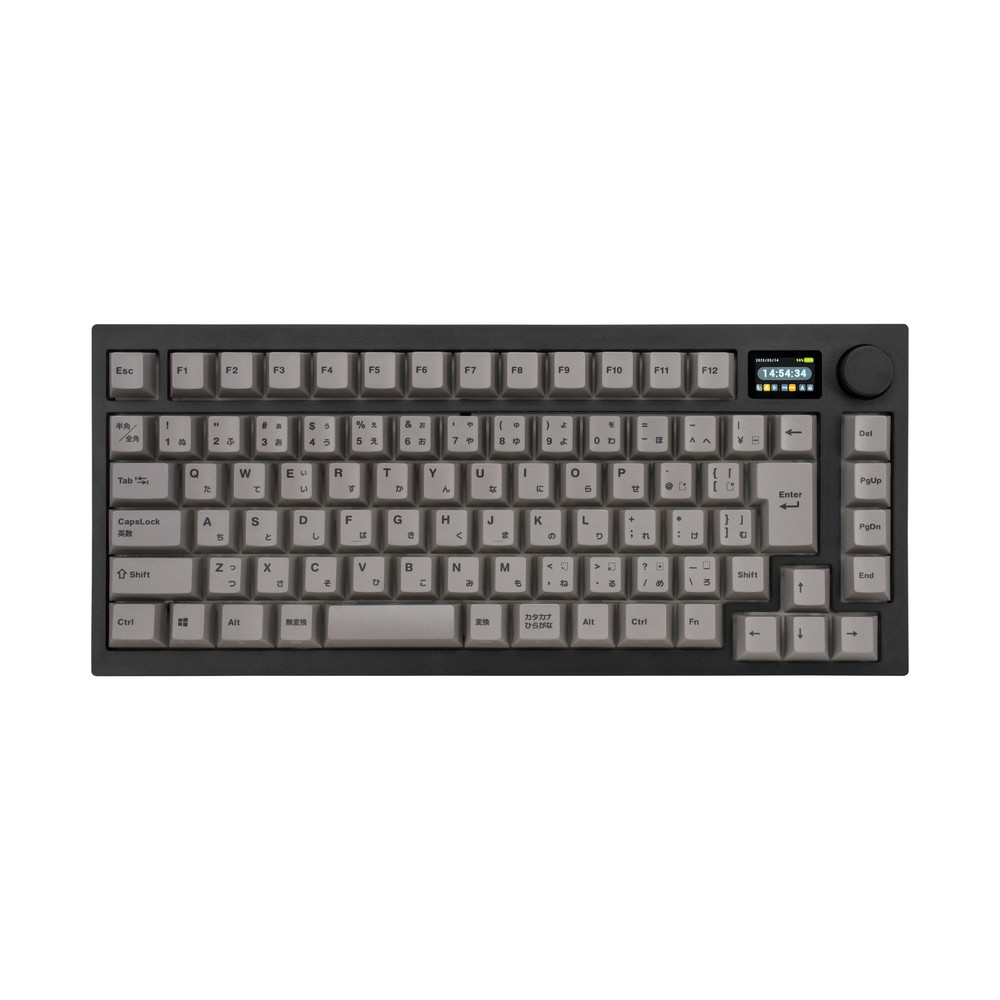 MD750 Delight JISはGATERON社とOutemu社のメカニカルスイッチを搭載したメカニカルキーボードです。1.2インチLCDスクリーンとノブによって直感的にライティングなどを操作できます。サイズは75%レイアウトで日本語キー配列。キースイッチはGATERON社(G Proシリーズ)とOutemu社を採用し、赤軸(リニア)・茶軸(タクタイル)・青軸(クリッキー)・クリームイエロープロ サイレント軸(タクタイル)から好みの打鍵感の物を選択できます。ホットスワップにも対応しており、別売の互換スイッチを購入することで変更が可能です。