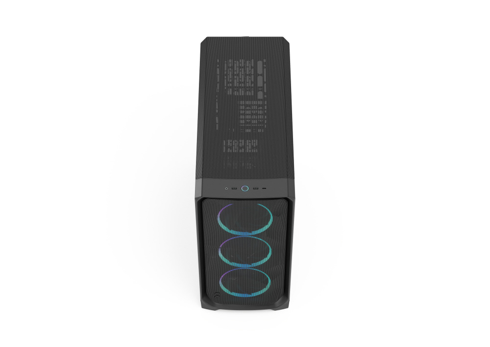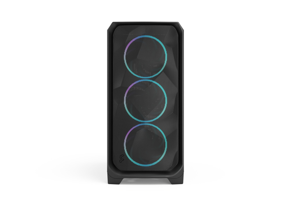 岩肌をイメージしたフロントメッシュデザイン。3基のアドレサブルRGBファンを搭載し、機能性と拡張性に優れたフルタワー型PCケース