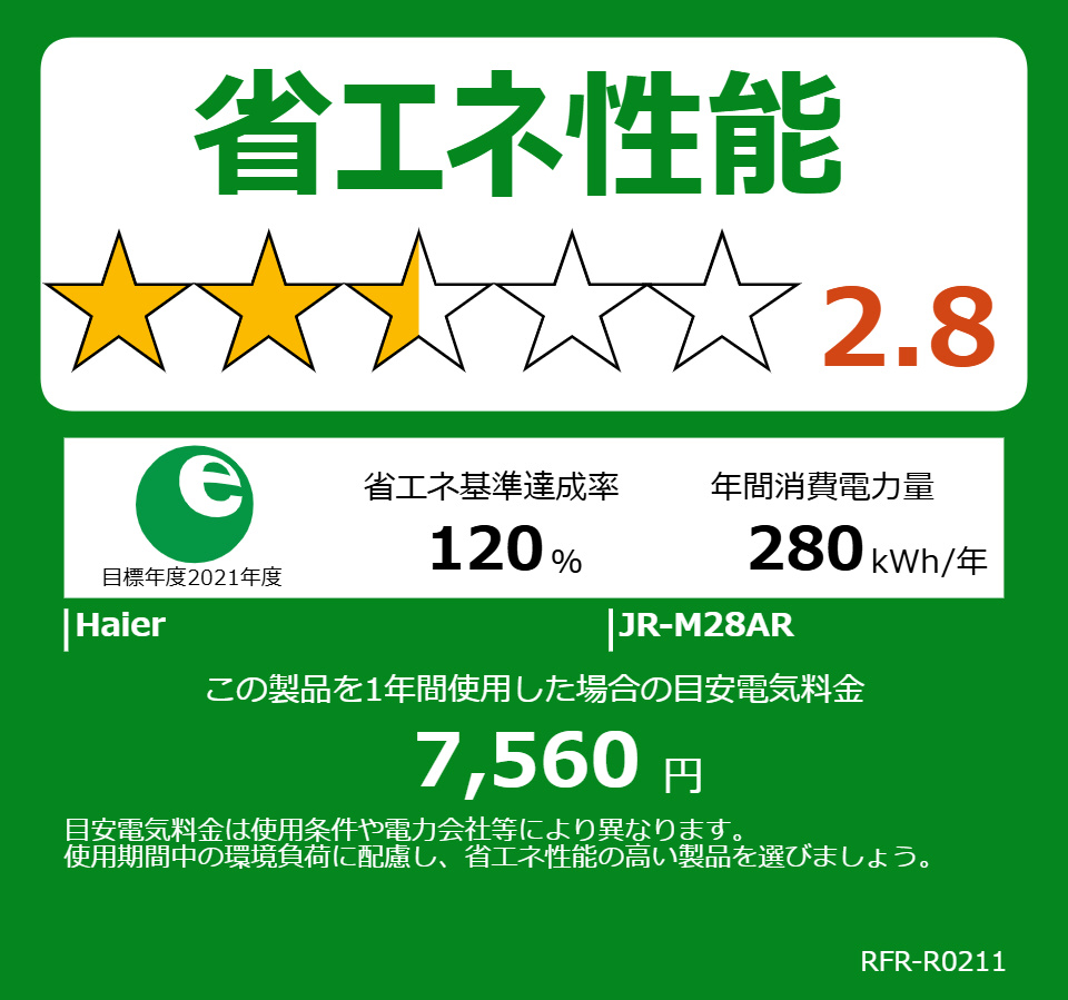 冷蔵庫 ステンレスシルバー JR-M28AR-S [幅54.5cm /279L /2ドア /右開きタイプ /2025年] 【基本設置料金セット】