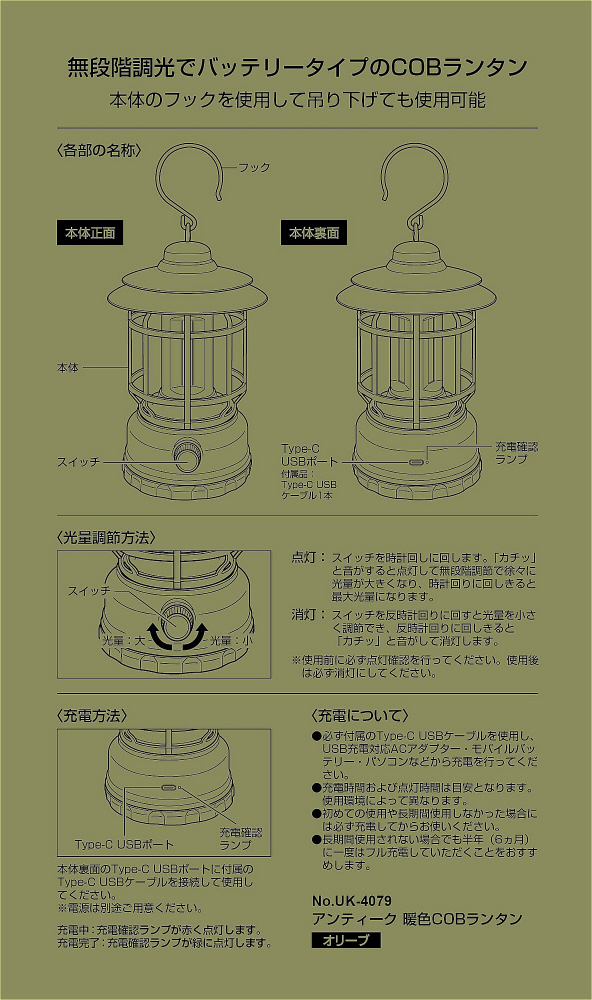 | 商品名 | アンティーク 暖色COBランタン |