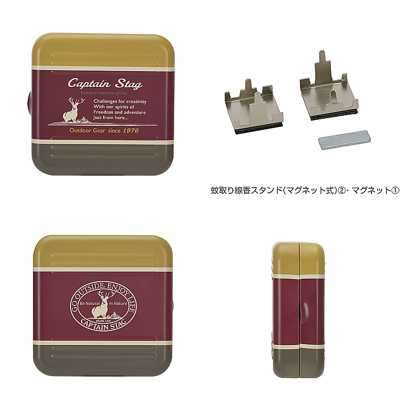 | 仕様2 | 【材質】 ・本体:錫めっき鋼板(表面加工=エポキシ樹脂塗装) ・蚊取り線香スタンド:鉄(クロームめっき) ・マグネット:ネオジム磁石 |