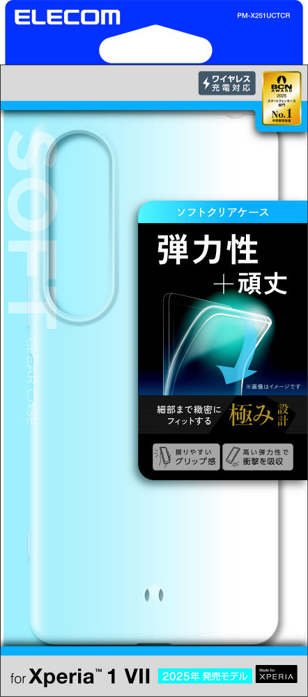強じんな耐久性としなやかな弾力性をあわせ持つ、TPU(熱可塑性ポリウレタン)素材を使用しています。端末のデザインが美しく際立つソフトケースです。