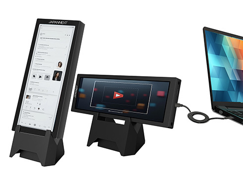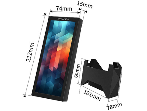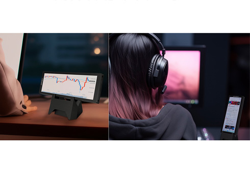 7.8インチのIPSパネルを搭載したモバイルモニターです。解像度400×1280の縦型小型ディスプレイで、優れた携帯性を備えており、専用スタンドを使用することでデスク上でも場所を取らずに設置が可能です。