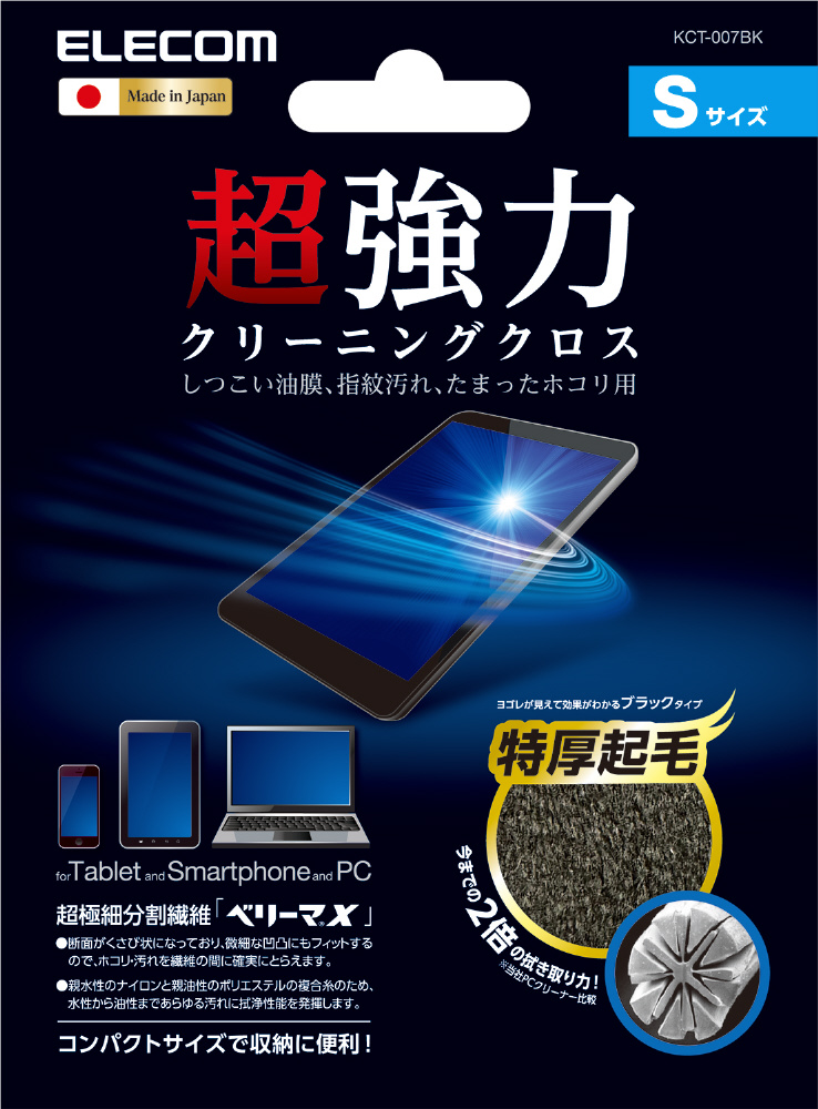 スマートフォンやタブレット、パソコンなど、あらゆる所のしつこい油膜や皮脂汚れもスッキリ!超極細繊維を使用した超強力クリーニングクロスです。