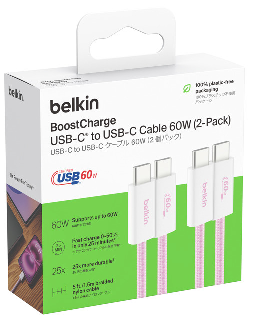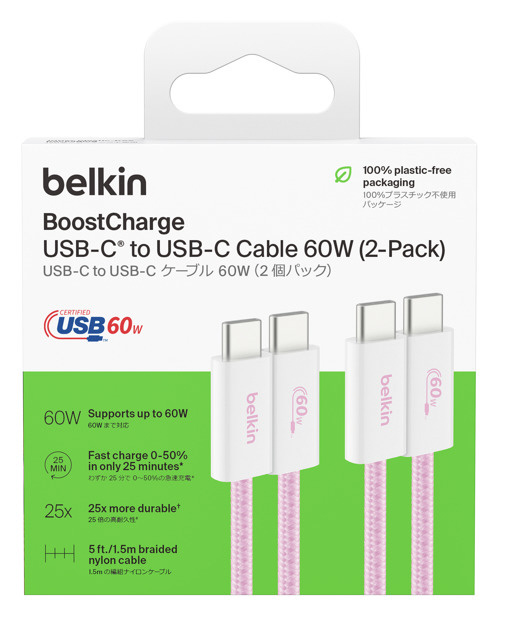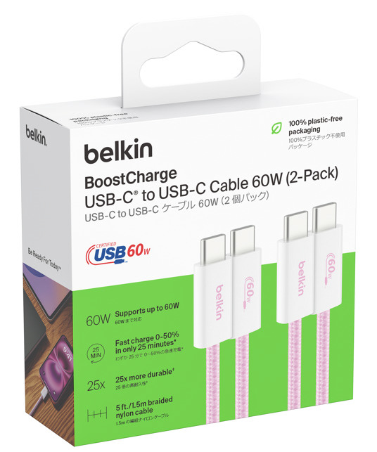 超ソフトなC-C60Wケーブル2本セット。iPhone 16対応/米国防火認証/10000回折り曲げテスト済。USB-IF認証、OTP機能付E-markerチップ搭載…