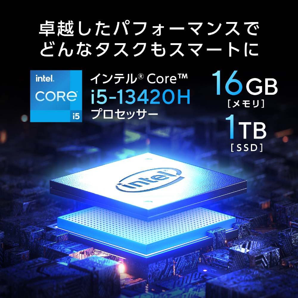 | CPU | Core i5 13420H (Pコア 2.1Hz/Eコア 1.5GHz) |