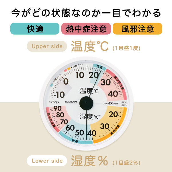 | 仕様2 | 熱中症や風邪の注意表示付き |