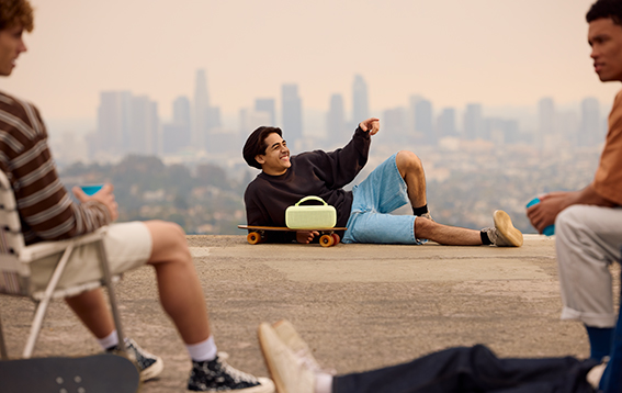 パーティーに欠かせない最高のステレオサウンドを楽しめる、ポータブルBluetoothスピーカー。音に包まれながら、全身で音楽を楽しめます。