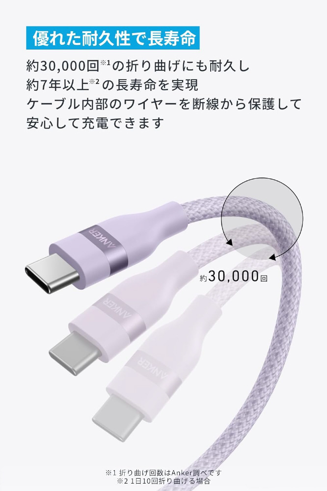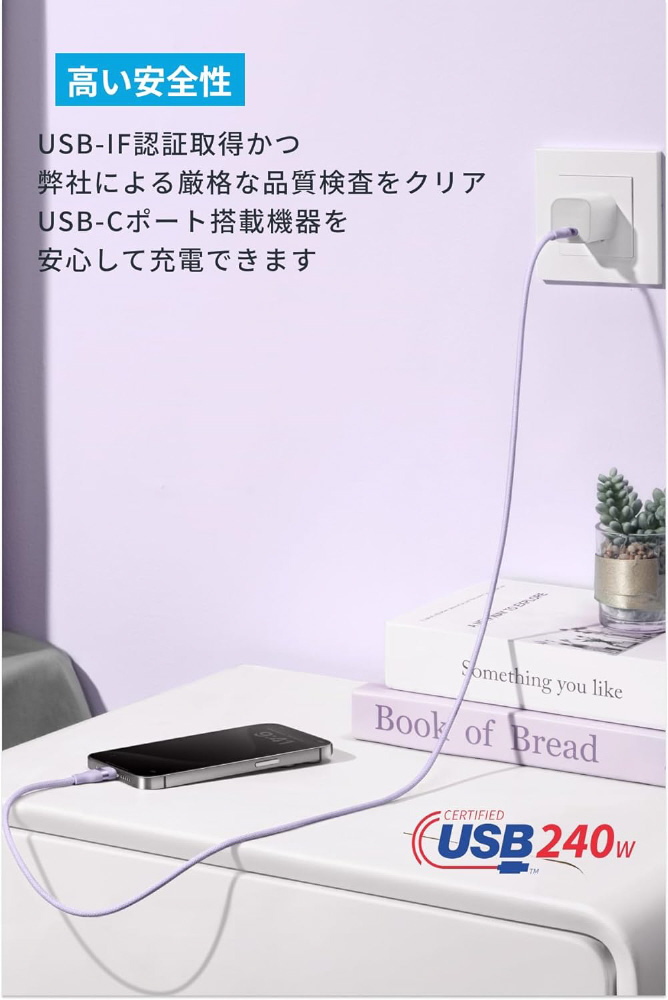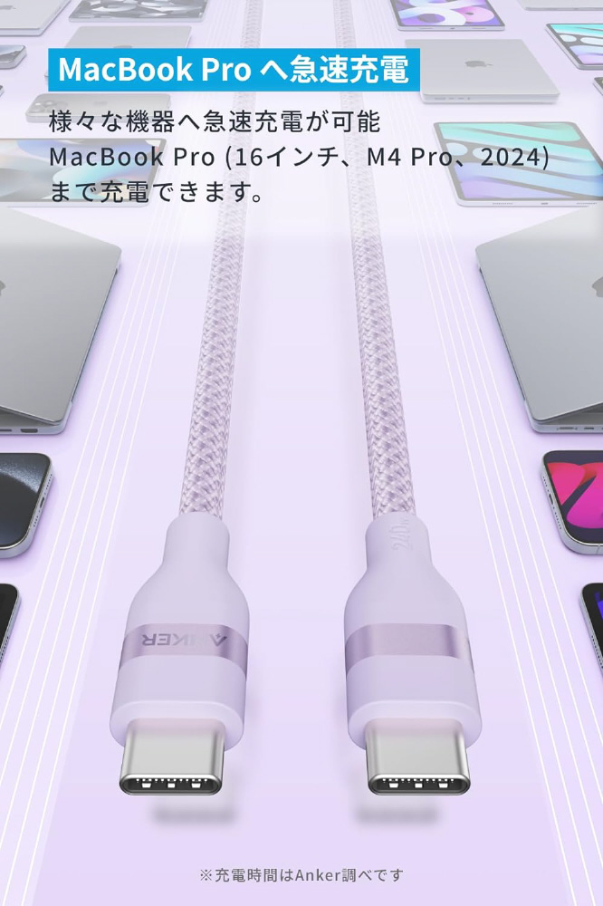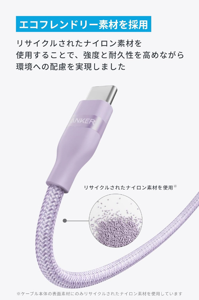 Anker USB-C & USB-C ケーブル (1.8m 240W 高耐久ナイロン) パープル Violet A82E2NV2