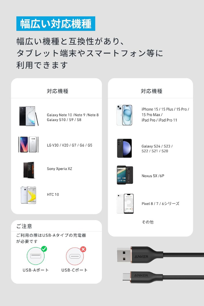 シリコン素材のやわらかなUSB-A&USB-Cケーブル