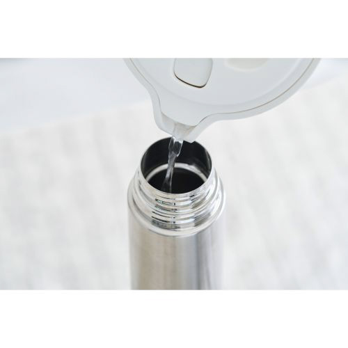 注ぎ口が少し下向きになっているためお湯が真下に落ちやすく、狭い口の水筒やコーヒーカップにもこぼさず注げます。