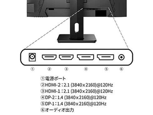28インチのIPSパネルを搭載し、120Hzの高速リフレッシュレートと1ms(MPRT)の高速応答速度に対応した4K(3840x2160)解像度のゲーミングモニターです。