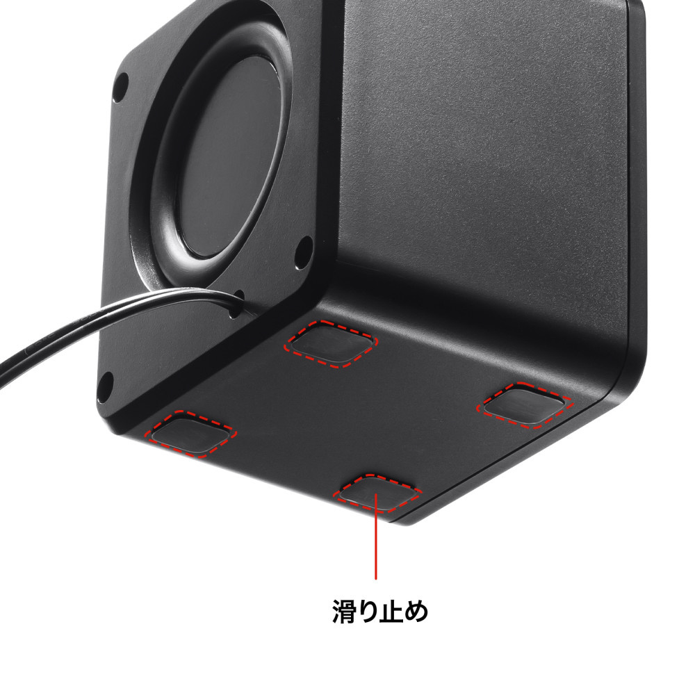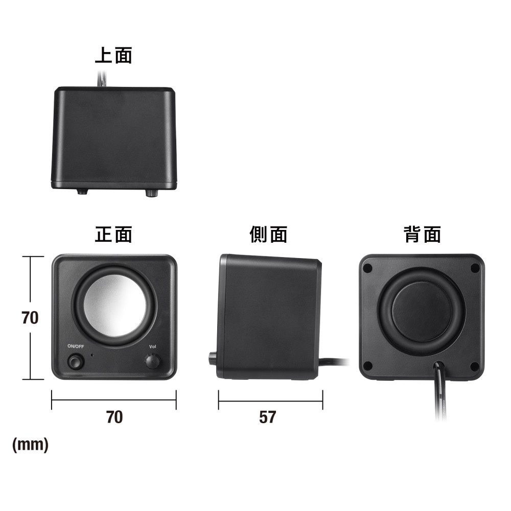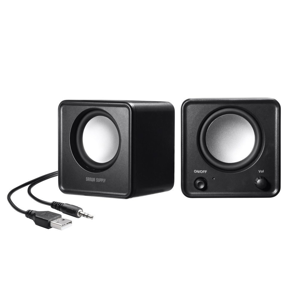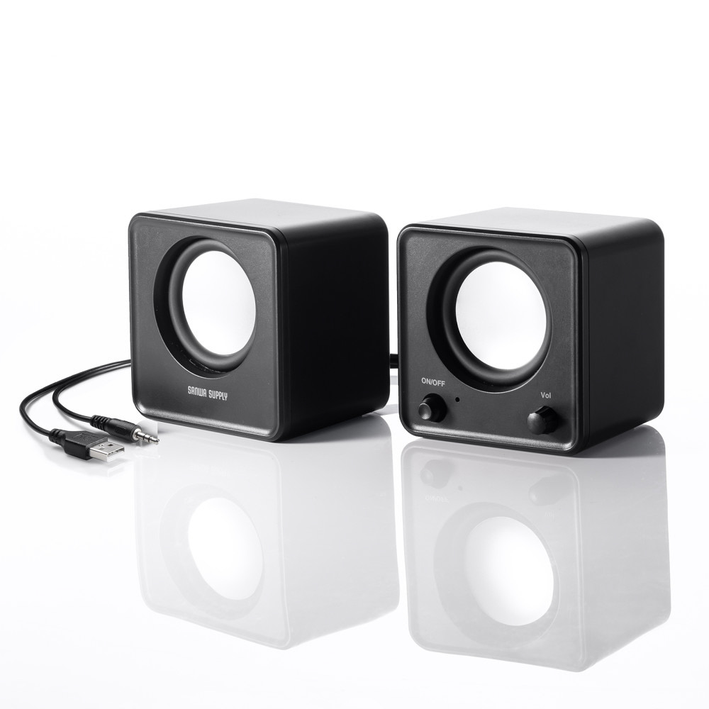 コンパクトサイズで場所を選ばず設置ができるUSB電源スピーカー。3.5mm接続。