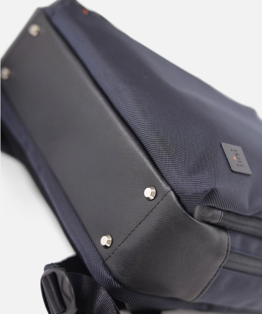 本体素材には、撥水性のあるツイル織ポリエステルを使用しています。また、開閉部分には撥水加工のコイルファスナー、底部分には合成皮革を組み合わせました。