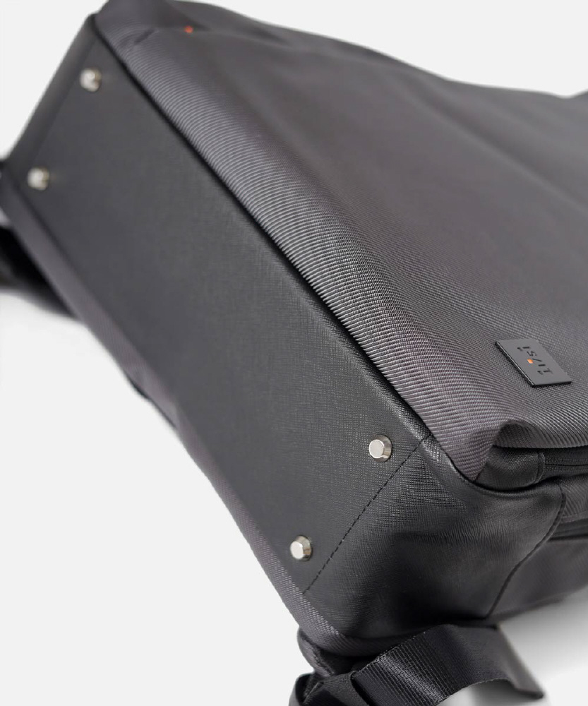 本体素材には、撥水性のあるツイル織ポリエステルを使用しています。また、開閉部分には撥水加工のコイルファスナー、底部分には合成皮革を組み合わせました。