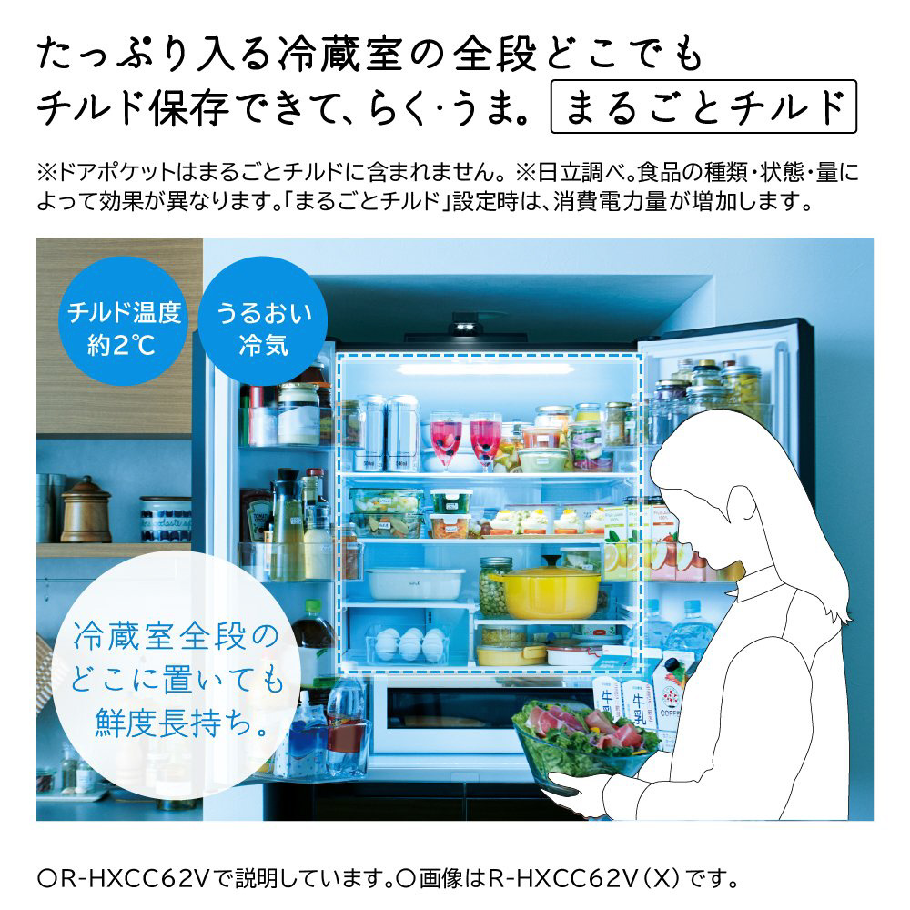 ※1 出荷時は「まるごとチルド」設定。設定時は消費電力量が増加。ドアポケットは「まるごとチルド」には含まれません。