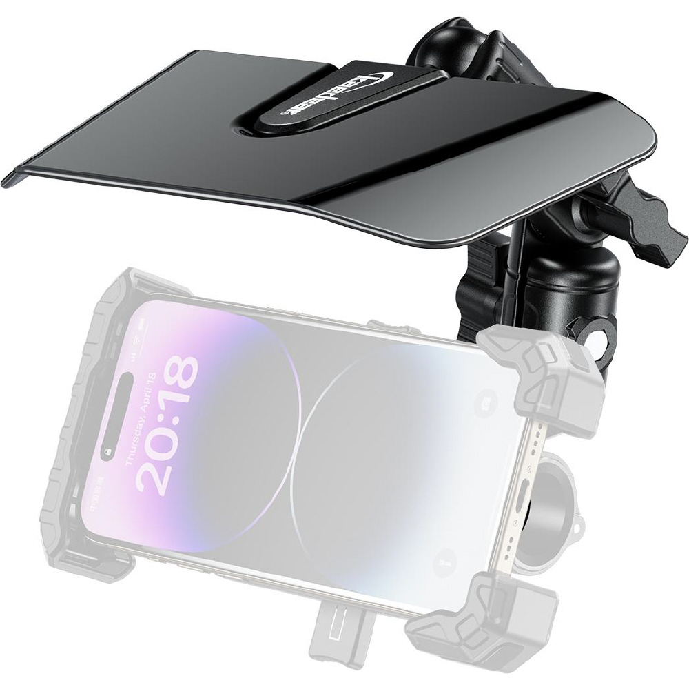 スマホナビを横向きで使用する方にも嬉しい縦向き用バイザーと横向き用バイザーの2点セット。汎用性の高い1インチボール仕様。バイザーを最適な位置に調整しやすい二連中間マウント。