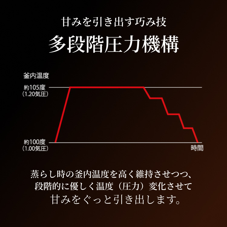 最高温度約250度、本土鍋による理想の炊き技でふっくらおいしい炊きあがり。