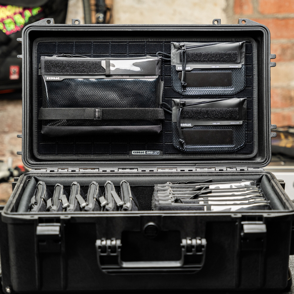 ストラップには伸縮性があり、コードポーチのS、M、L、XLの4サイズすべてに対応。機材の整理に役立ちます。