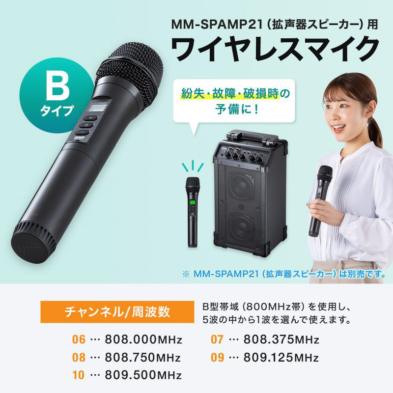 | 商品名 | ワイヤレスマイク(MM-SPAMP21用・Bタイプ) MM-SPHMW7B |